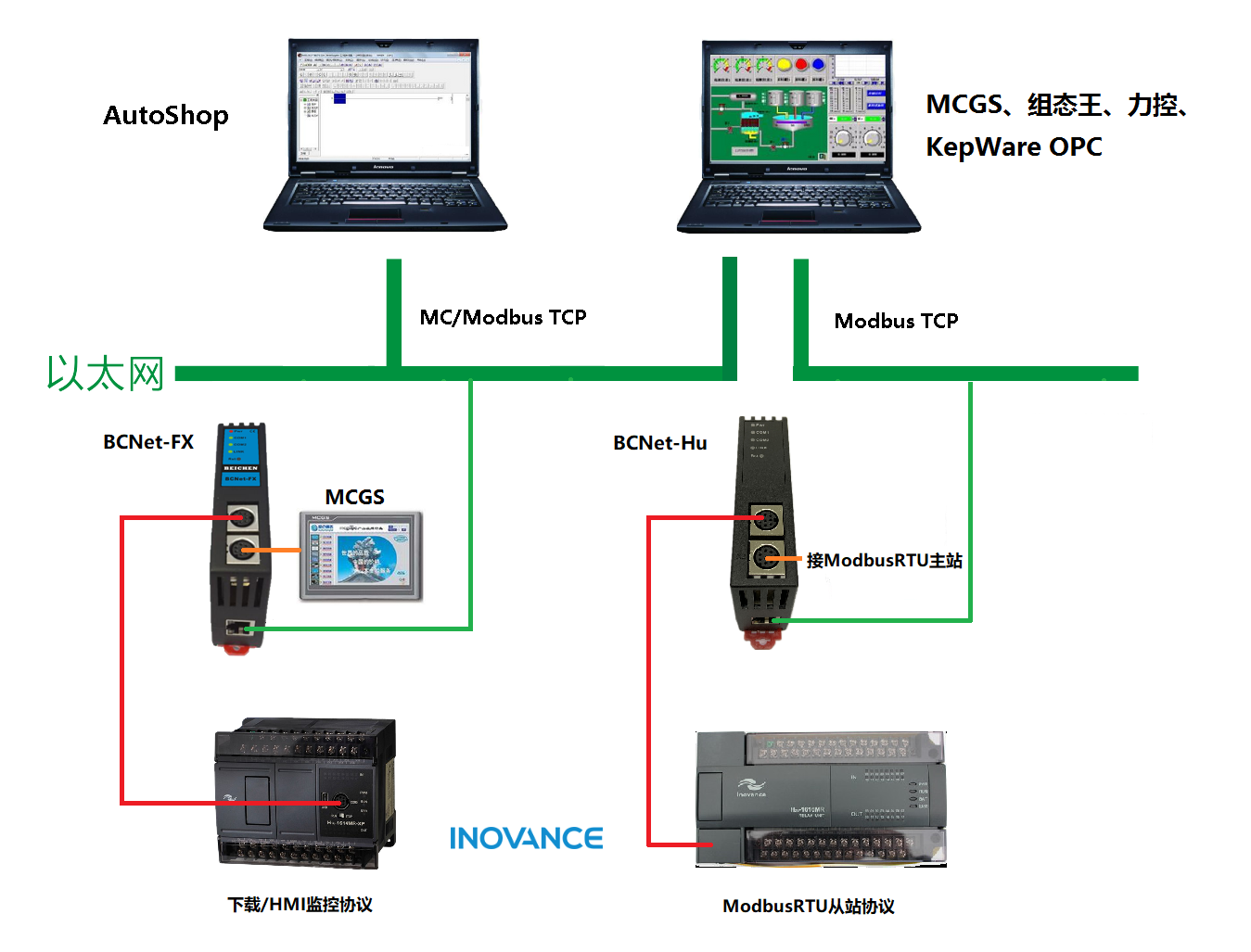 產(chǎn)品簡介 BCNet-HU是一款經(jīng)濟型的以太網(wǎng)通訊處理器,是為滿足日益增多的工廠設(shè)備信息化需求(設(shè)備網(wǎng)絡(luò)監(jiān)控和生產(chǎn)管理)而設(shè)計,用于串口通訊參數(shù)配置是Modbus RTU從站的匯川HnU系列PLC的以太網(wǎng)數(shù)據(jù)采集,非常方便構(gòu)建生產(chǎn)管理系統(tǒng)。若匯川HnU系列PLC串口通訊參數(shù)配置是下載/HMI監(jiān)控協(xié)議,則選BCNet-FX。匯川緊湊型EASY系列小型PLC,可選網(wǎng)絡(luò)耦合器BCNet-NAT或BCNet-MB。