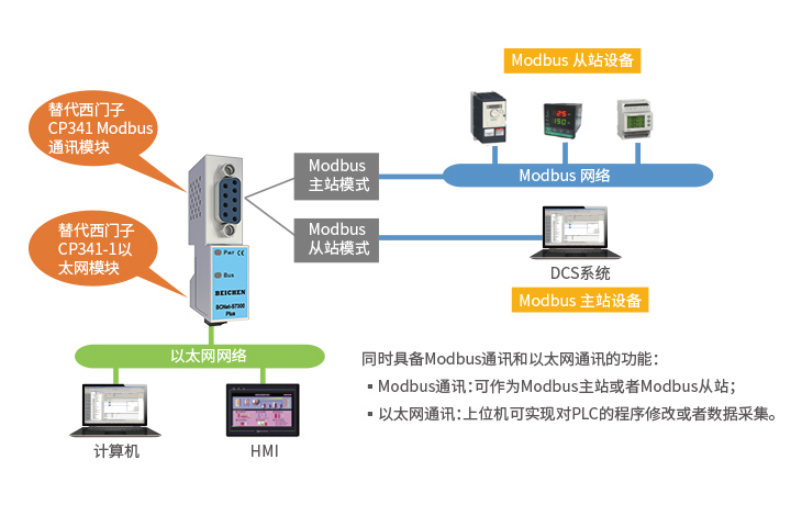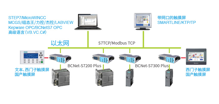 BCNet-S7300Plus是BCNet-S7300的高級(jí)版。在BCNet-S7300的基礎(chǔ)上,以太網(wǎng)口增加了支持與西門子帶網(wǎng)口PLC(S7-200SMART 、S7-1200/S7-1500、S7300PN、CP243-1/CP343-1/CP443-1)之間的通訊功能和ModbusTCP主站通訊。